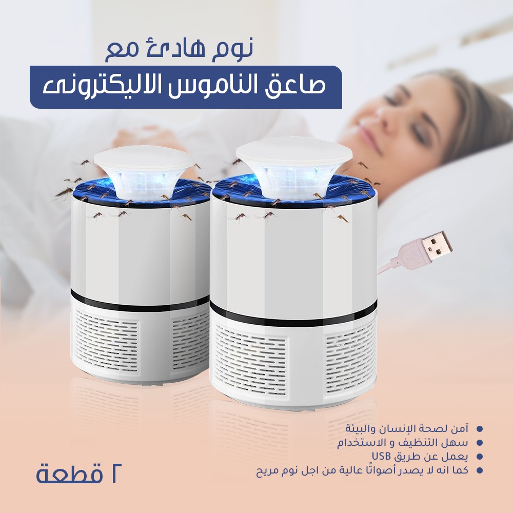 عمل عن طريق جذب الناموس والحشرات إلى مصدر الضوء – وبعد ذلك سيجعل التيار الهوائي المنبعث القوي يقوم بامتصاص الناموس – آمن لصحة الإنسان والبيئة – سهل التنظيف و الاستخدام – يعمل عن طريق USB – كما انه لا يصدر أصواتًا عالية من اجل نوم مريح – لون عشوائي