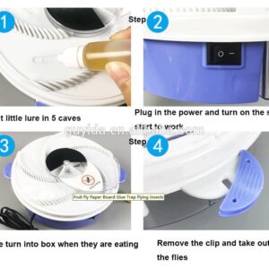 مصيدة الزباب الكهربائية YEDOO – التردد: 50 / 60Hz – قوة المحرك: 4W – الوزن 0.65 كجم / قطعة – الأبعاد الخارجية: 20x20x7 سم – لاستعمال: ضع بضع قطرات من العسل في مصدر الطاقة ، اقلب اللوحة وابدأ العمل -المبدأ: عندما يأكل الذباب ، يتم نقلهم إلى صندوق التجميع ، أضف الماء وكمية صغيرة من المنظف ليغرق الذباب الحي ، نظفه وامسحه نظيفا ، ثم ارفعه